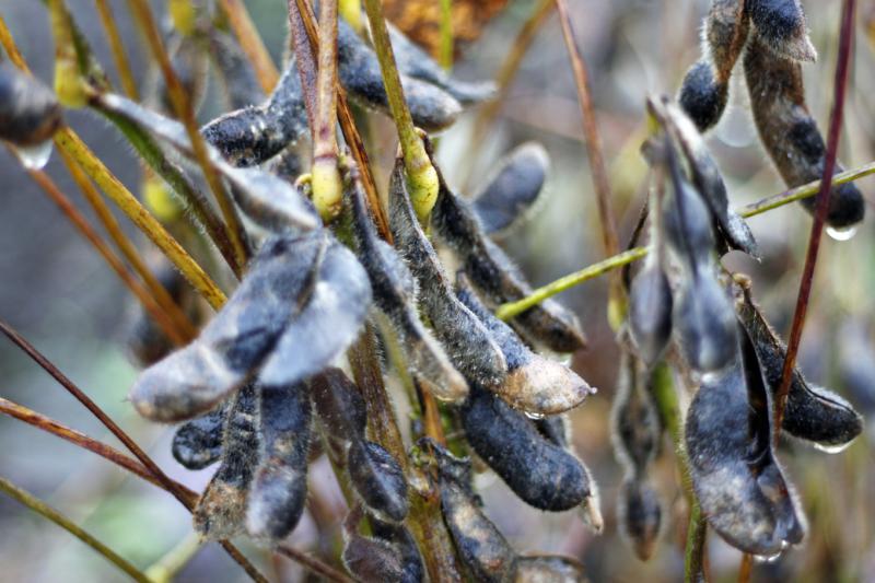 マメを採るために畑でそのまま枯らされている大豆に目が行った。