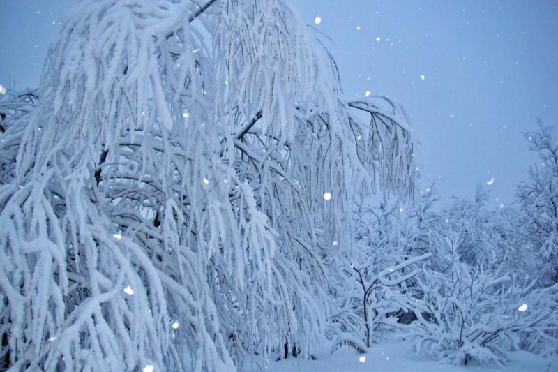 その辺の雑木にも厚く着雪して、蔵王の樹氷とまでは行かないけど、