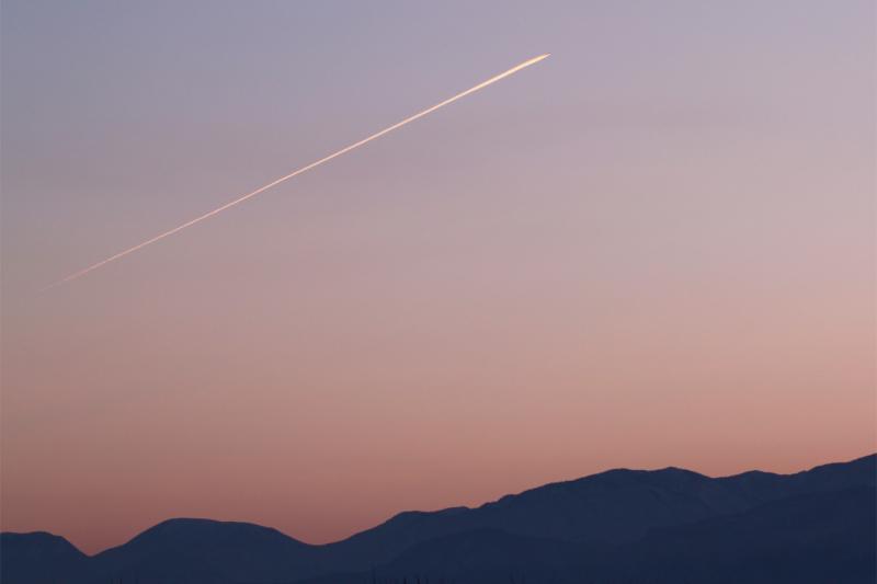 奥羽山脈上空に、とても綺麗な飛行機雲が伸びていた。