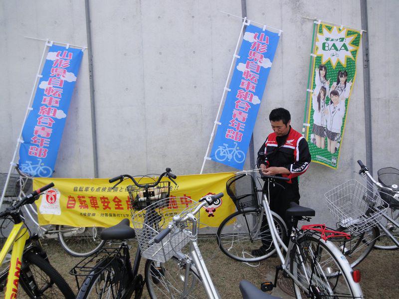 「自転車点検無料」などのノボリを立てていると、ブレーキが効かないとか