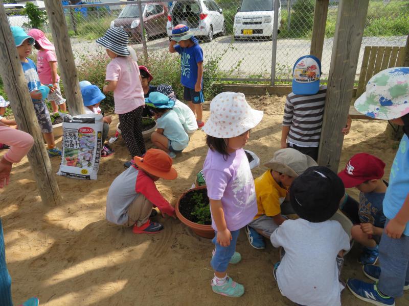 山形市「たつのこ保育園」さんにお邪魔して可愛い園児たちと「シバザクラ」の花を鉢に植えました。年長さん、年中さんが一生懸命土を入れ、丸い穴を堀りそこへ苗を植える作業を真剣にやり、えらかったです。来年の春の開花期には、絵に描き展示し、5月3日の観賞会の時には、会場にお借りして多くのみなさんに見てもらう予定です。今回は、ピンクの花のみでしたが、2回目は白と紫をもってまた一緒に植え方にチャレンジします。園の先生方、そして可愛い年長組さん、年中組さんありがとう!楽しかったよ。