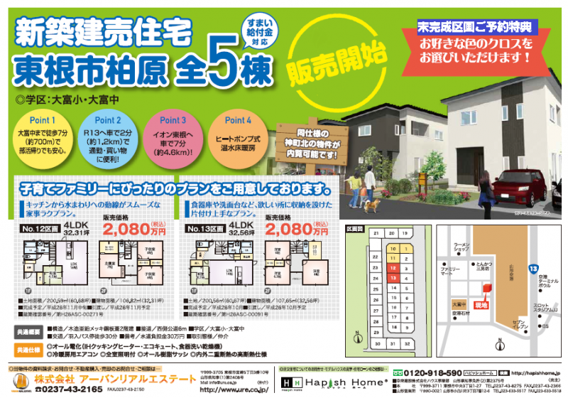 東根市柏原の建売住宅は NO.12 NO.13 区画の公開となります。