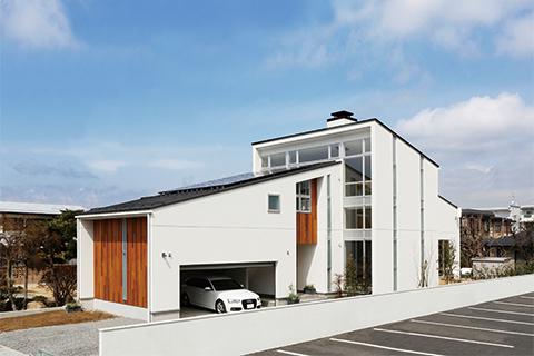 「カーテンウォールがある 大屋根の家」
