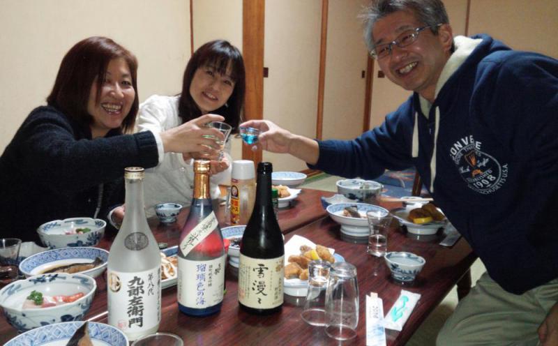 ▼お名前(ニックネーム)チームなべ▼写真に写っている県産酒名出羽桜 雪漫々、東北泉 瑠璃色の海、九郎左衛門▼ひと言年に幾度か、県産酒(日本酒あり、ワインあり)を持ち寄っての飲み会を開催しています。今日は新年会。いい仲間でーす。(^^ゞ
