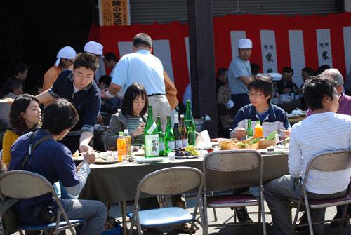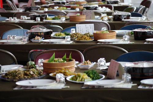 さなぶりのごちそうがずらりとならびます。