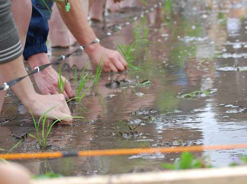日頃、なかなか体験できない田植えを実際に行うことで、お酒造りに対する理解を深めていただけます。