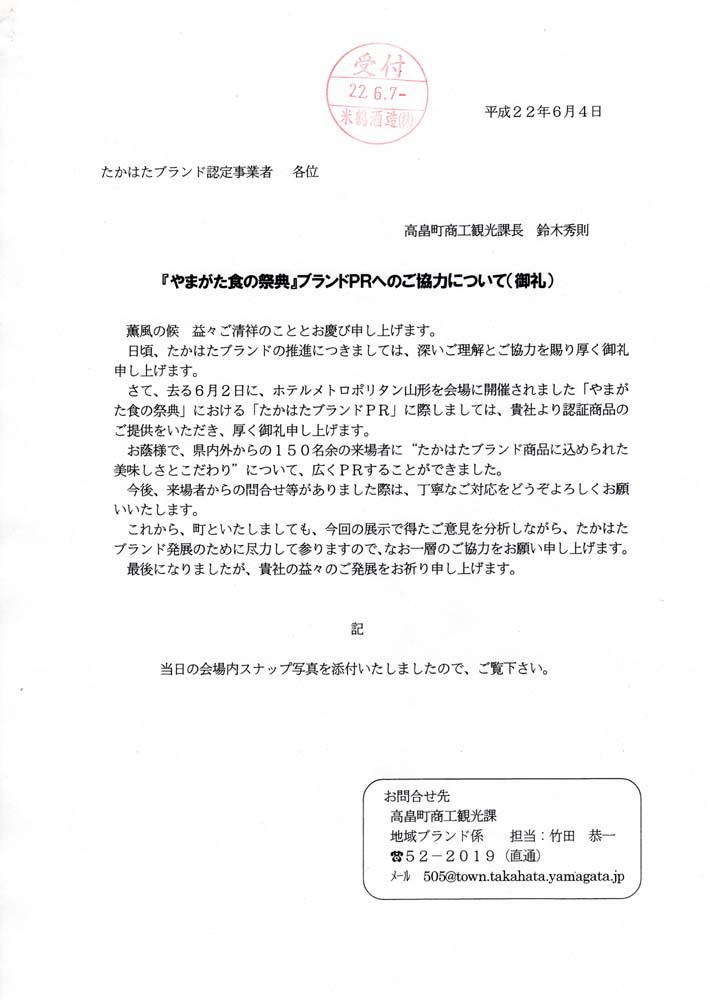 ▼「やまがた食の祭典」における「たかはたブランド」PR活動