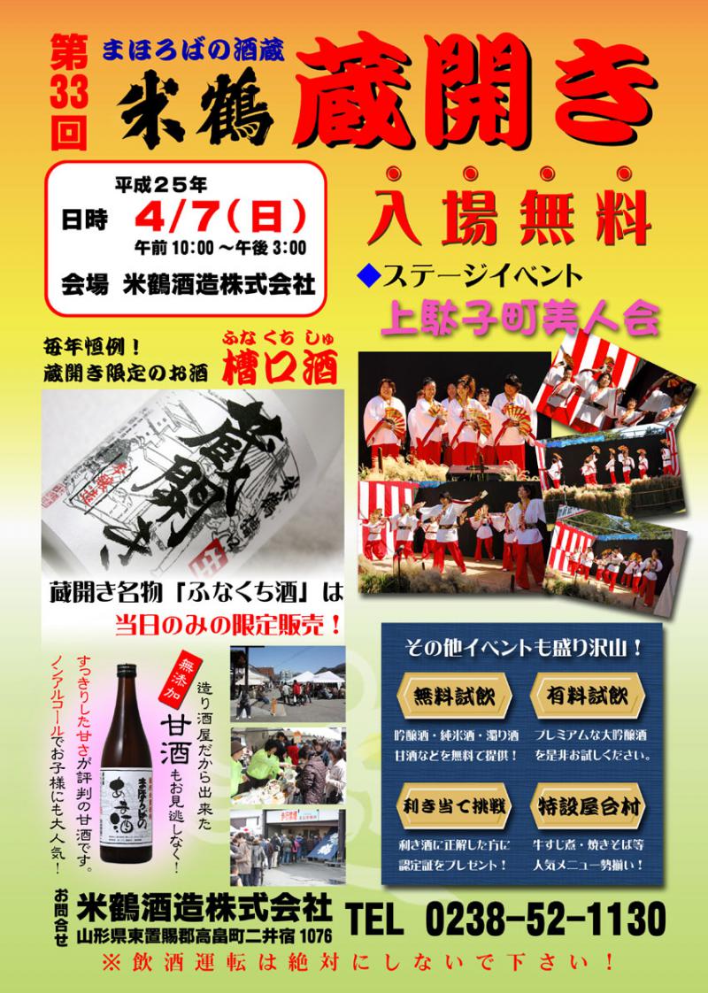 早いもので、米鶴の春の恒例イベント「蔵開き」は、今年で33回目を迎えます。