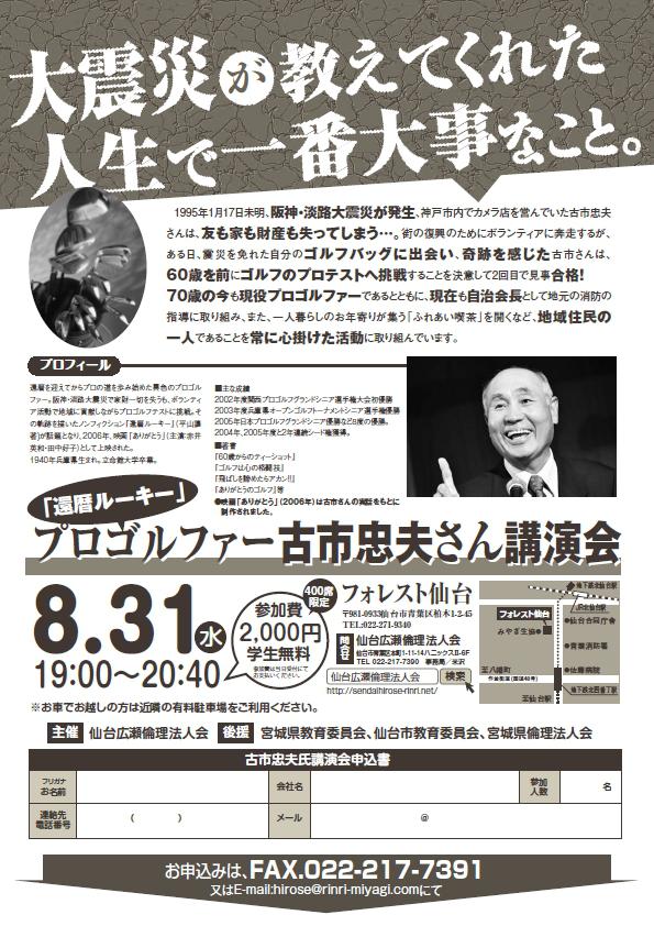< 還暦ルーキー プロゴルファー古内忠夫さん 講演会 >