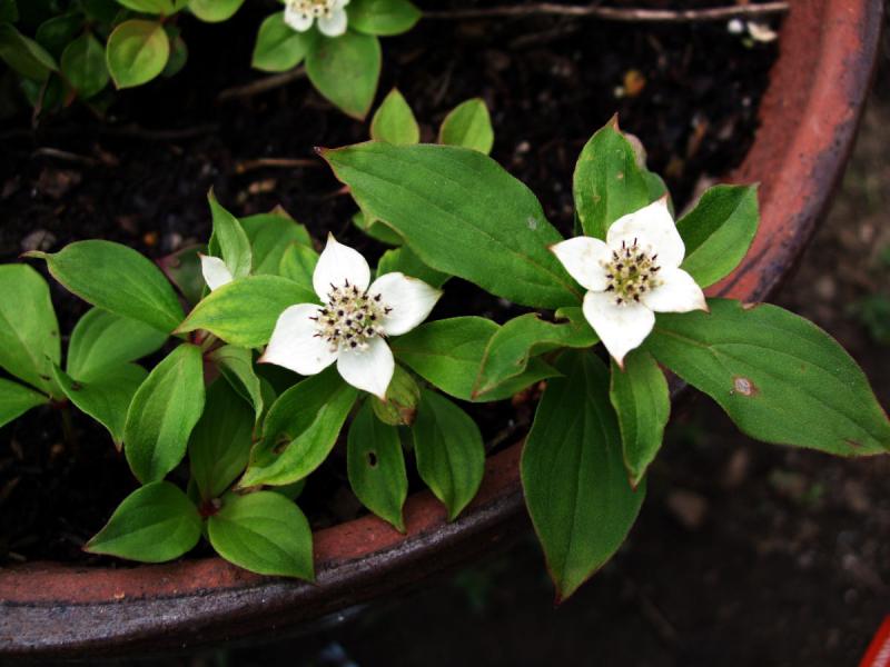 鉢植えにしているゴゼンタチバナの花が咲いています。